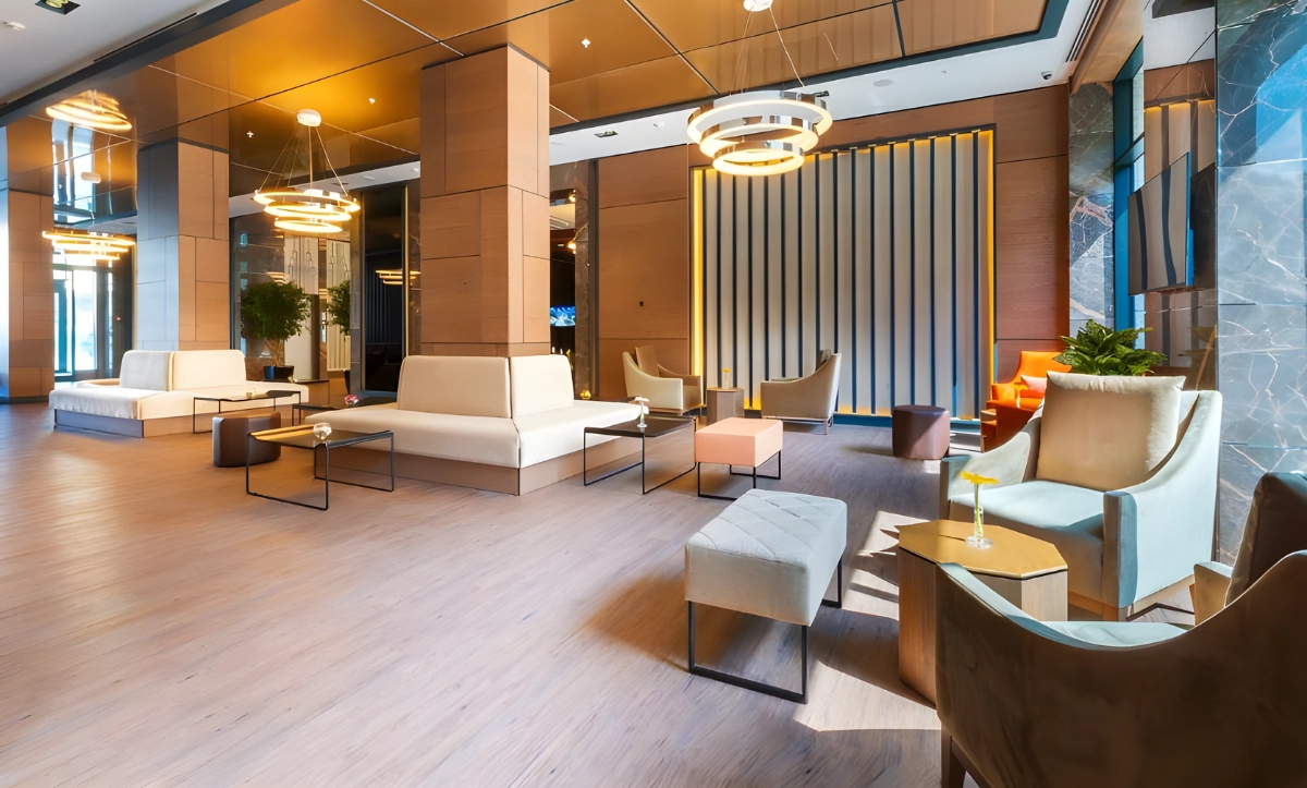 Günay Furniture olarak, bir otelin kimliğini belirleyen en önemli alanlardan biri olan lobi bölümü için hayata geçirdiğimiz bu projede, modern tasarım çizgilerini yüksek konforla birleştirdik. Tasarımdan montaja kadar her aşamasını titizlikle yönettiğimiz bu çalışma, firmanın “tam sorunsuzluk” ilkesinin ve 2002’den bu yana gelen sektörel tecrübesinin somut bir örneğidir.